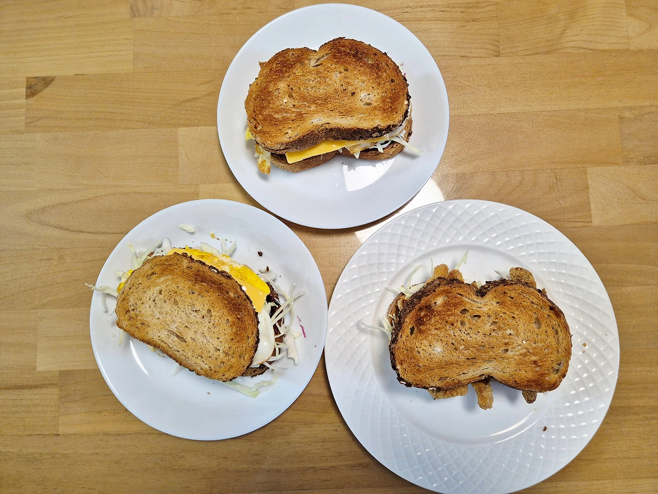 우리는 달걀프라이, 양배추, 치즈, 잼