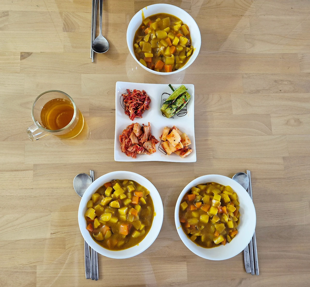 카레와 김치류 반찬들