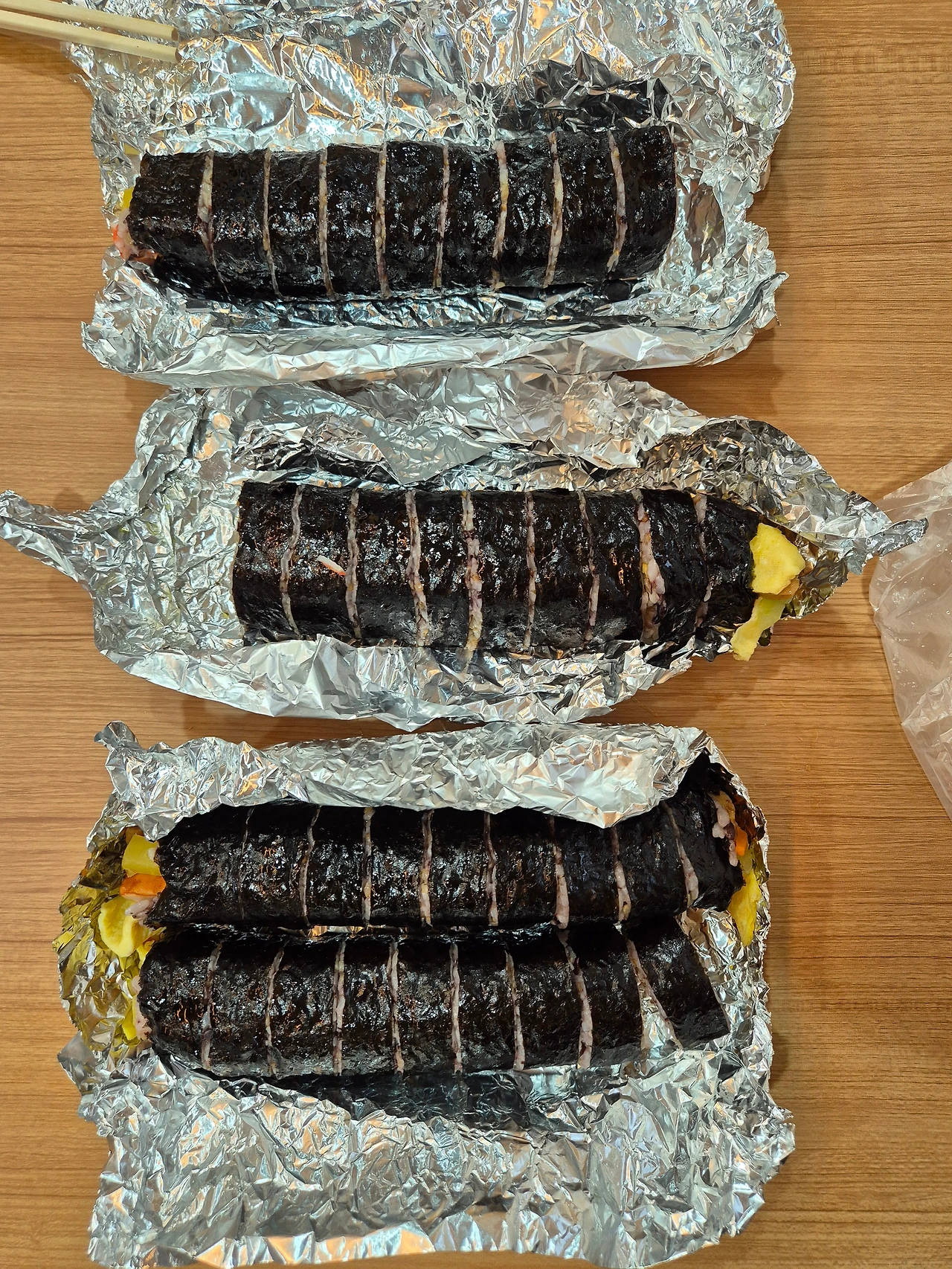 점심으로 먹을 김밥을 싸느라 못 먹었다.