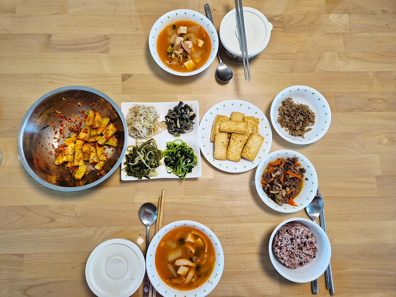 - 물을 넣고 끓이면서 국간장, 소금 간 추가