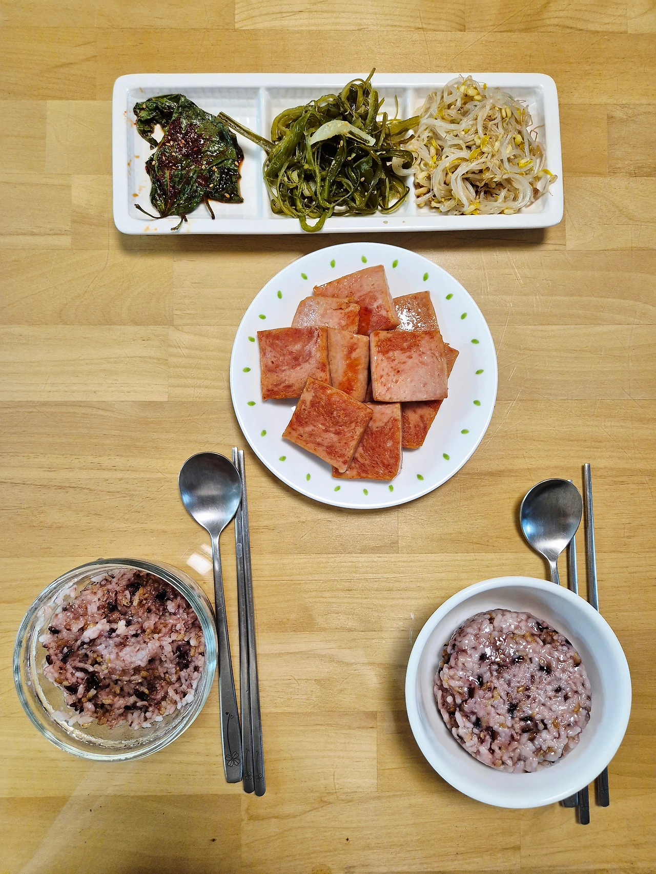 스팸 덕분에 조촐한 밥상이지만