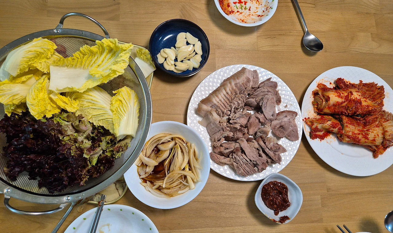 "김치에 수육 싸 먹고 싶다."라는 아들의 말에 남편이 뚝딱 차려낸 수육 한상.