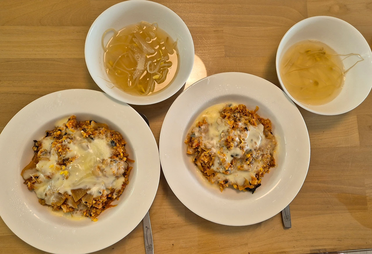 # 점심: 김치볶음밥(with. 치즈)과 콩나물국