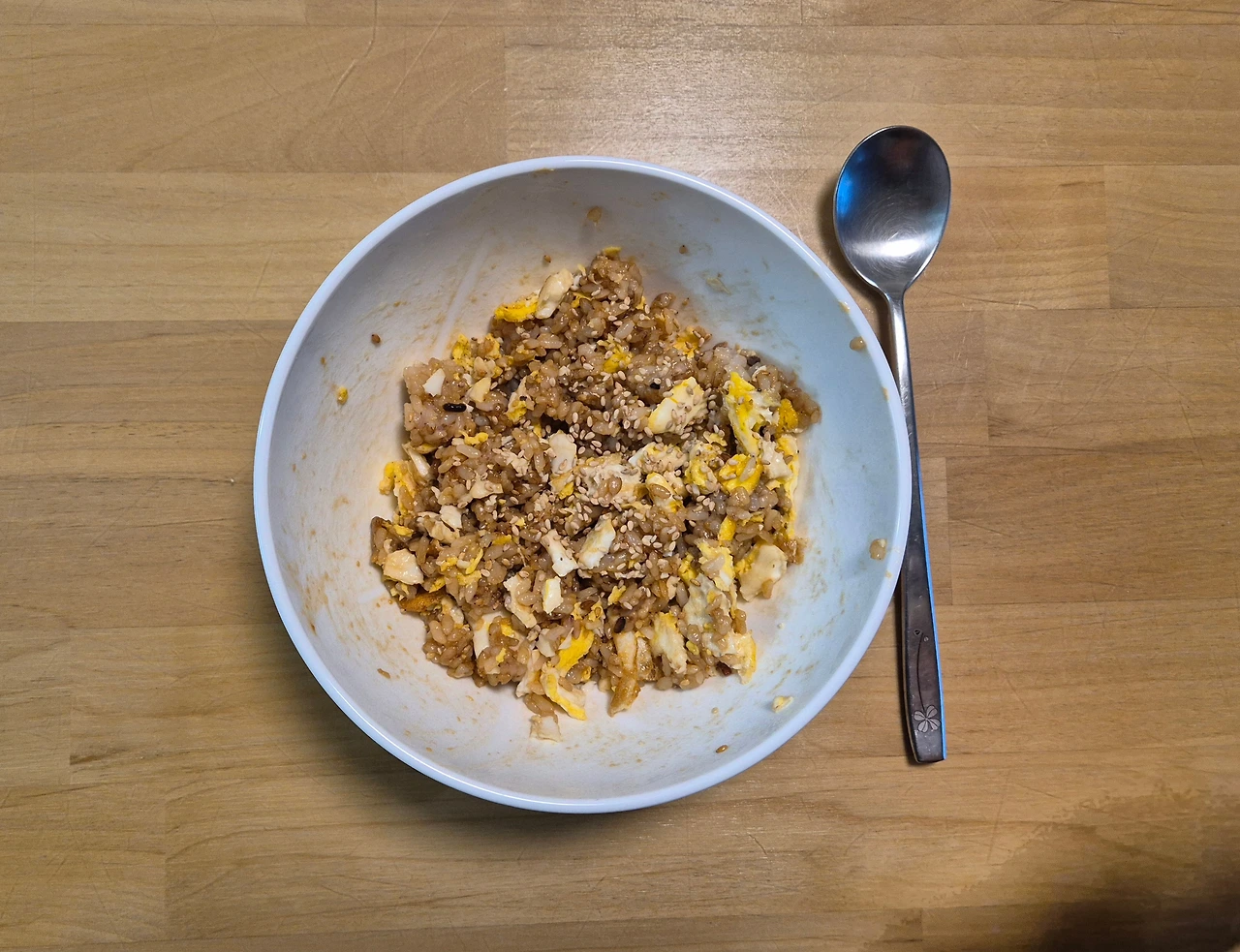 아침: 아들 혼자 간장계란밥