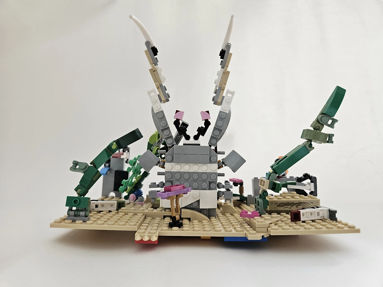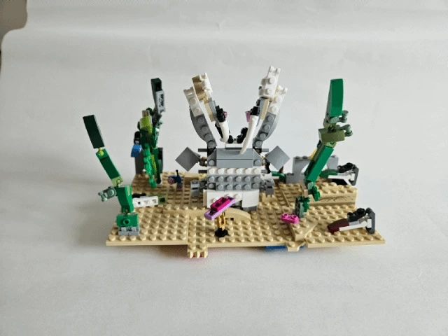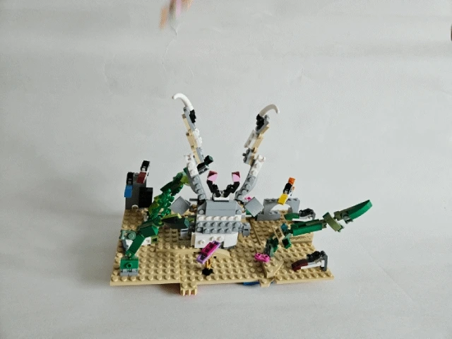 이 레고 작품 '얼룩말갯가재'는 지구에 현존하는 얼룩말갯가재가 모래 속에서 튀어나와 물고기를 사냥하는 모습을 보고 만들었습니다.
