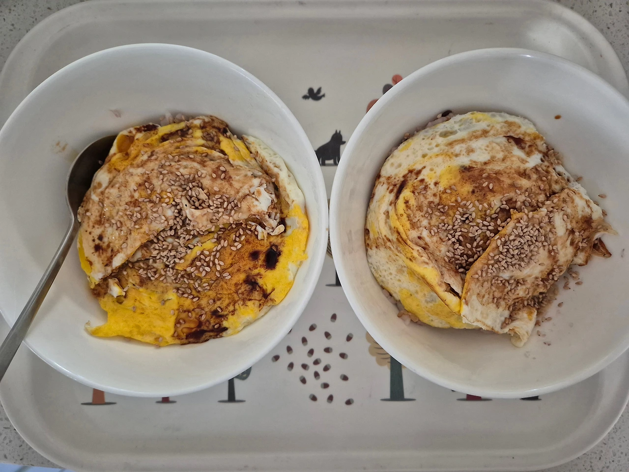 아침: 아들과 나만 달걀간장밥