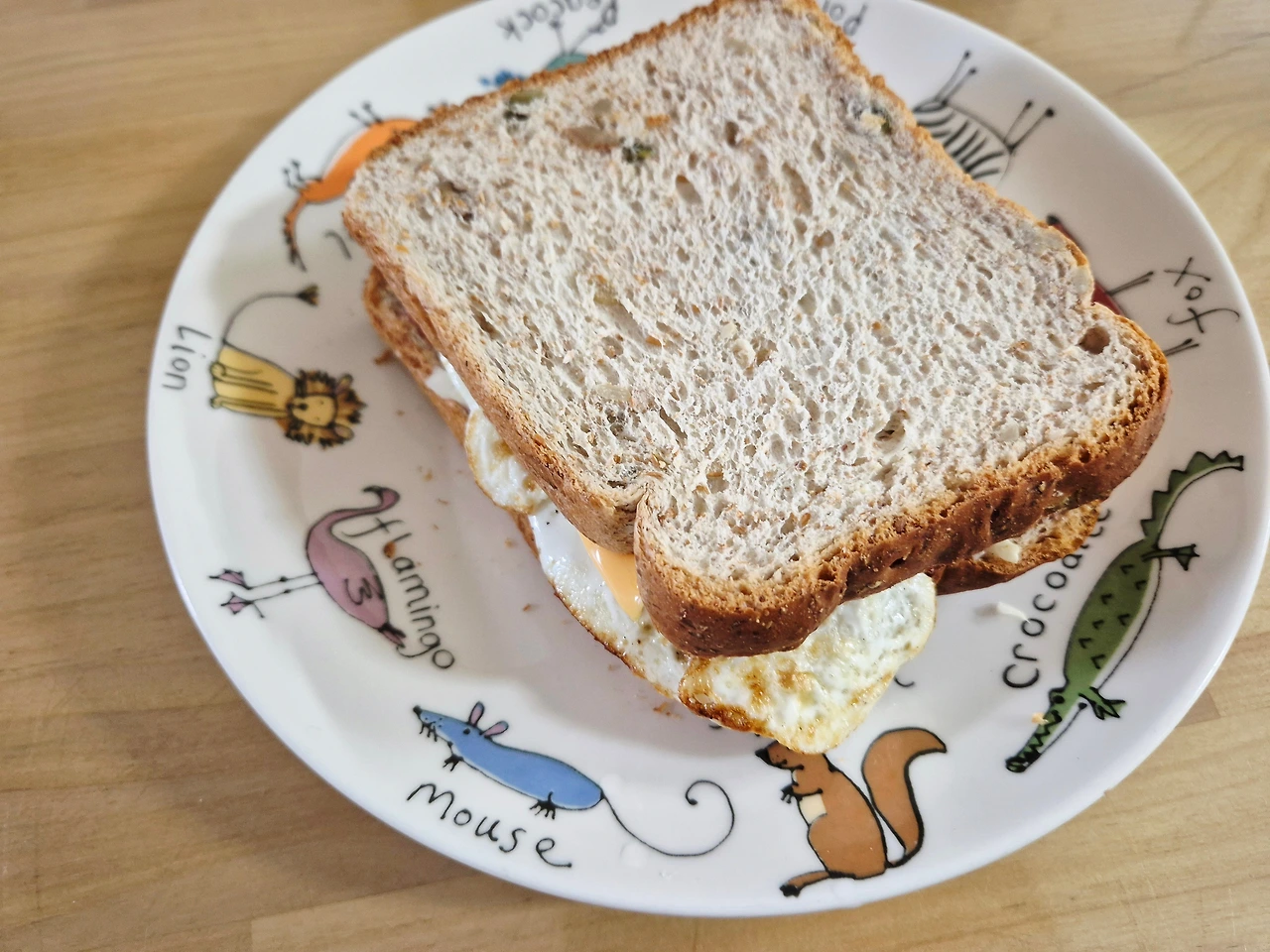 구운 식빵에 잼 바르고 양배추 쌓고 계란프라이랑 치즈 탁 올리면 끝.