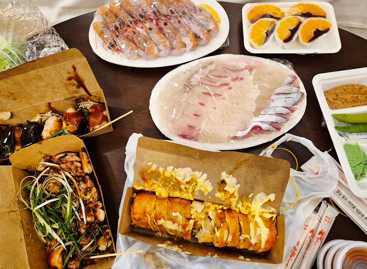 숙소로 돌아오는 동안 식어버려 아쉬웠지만 충분히 맛있게 먹었다. 아들은 인터넷에서 보고 기대했던 음식들을 먹어 보고 엄빠는 딱새우 회를 처음 먹어봤다.