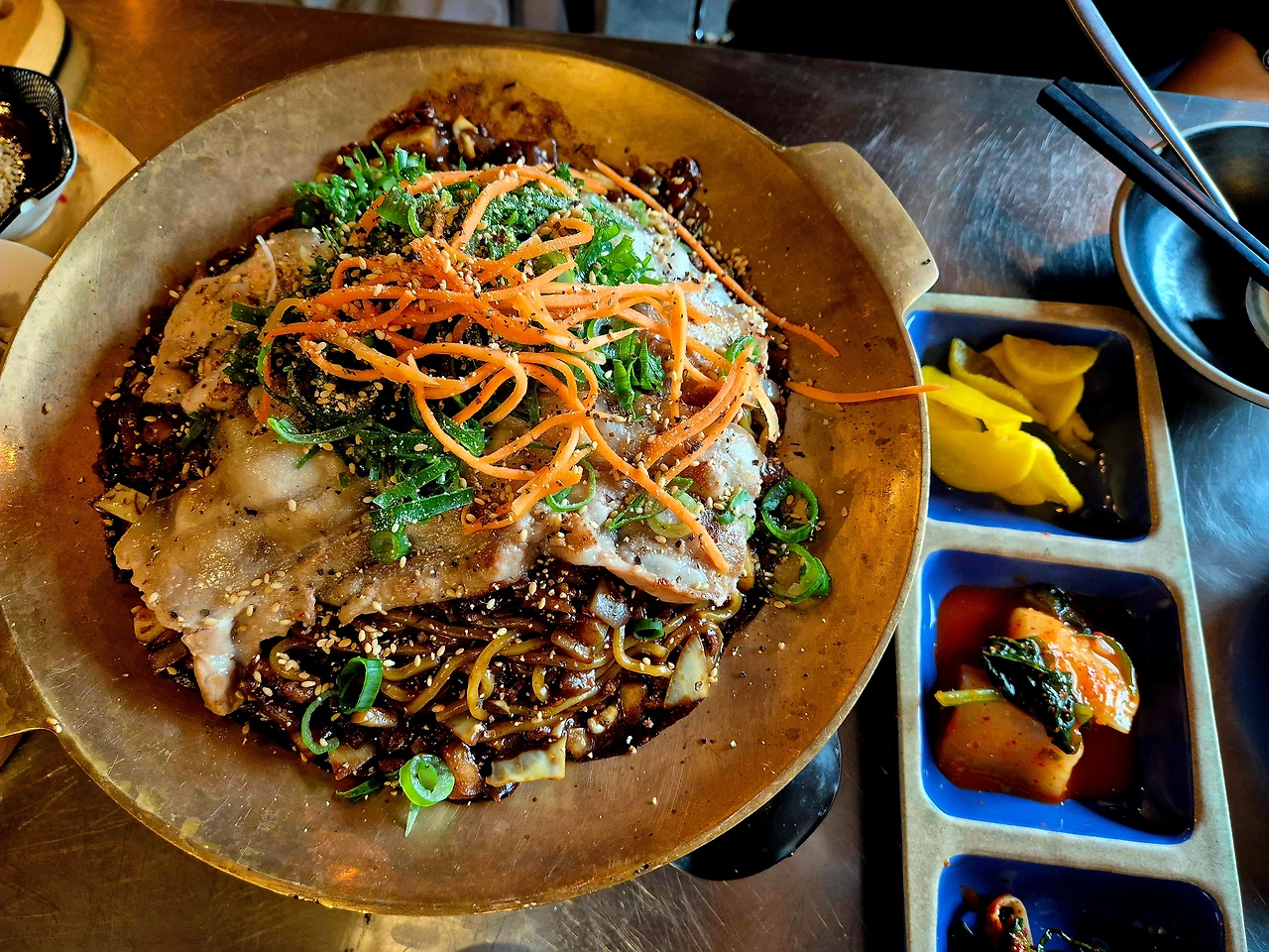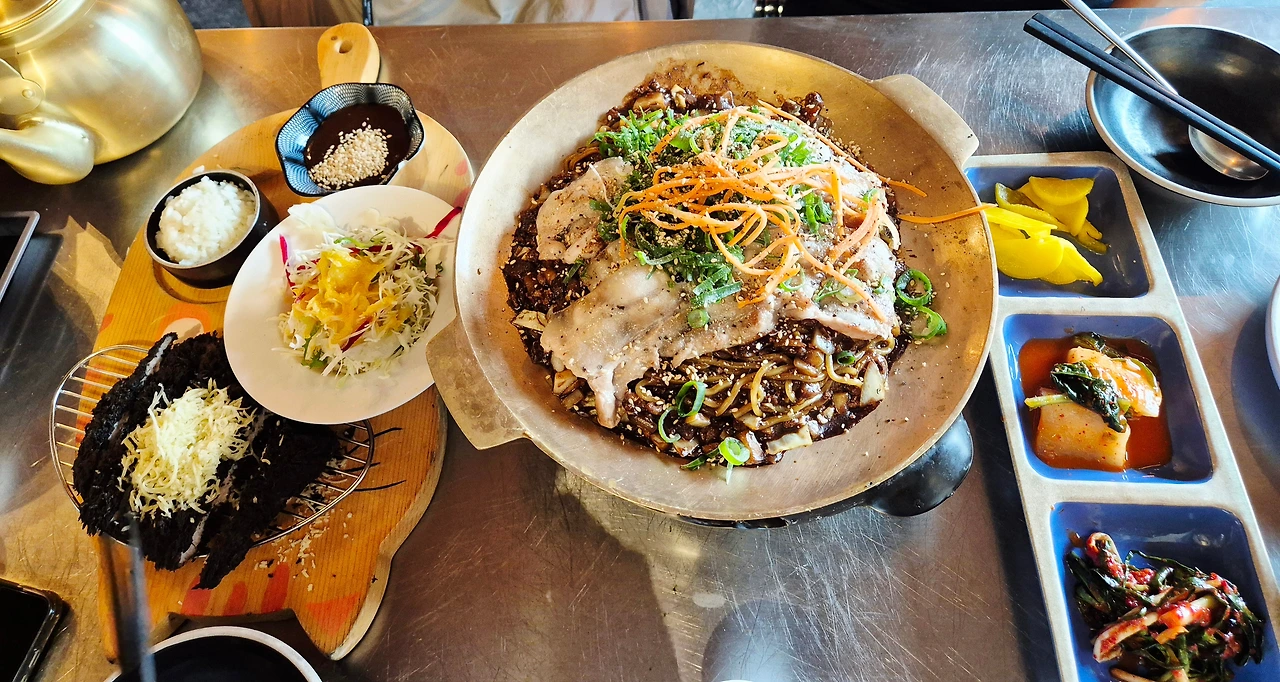 고사리를 갈아서 만든 자장 소스에 돼지고기 구이가 올라 간 자장면도 최고였다.