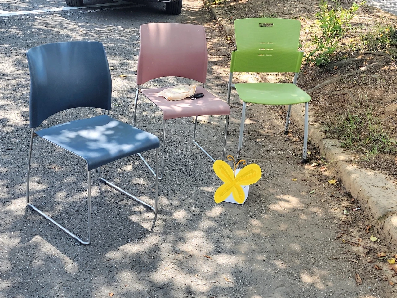 그러다 문득 그늘 아래 방치되어 있는 의자를 발견! 신기하게도 딱 세 개가 있었다.