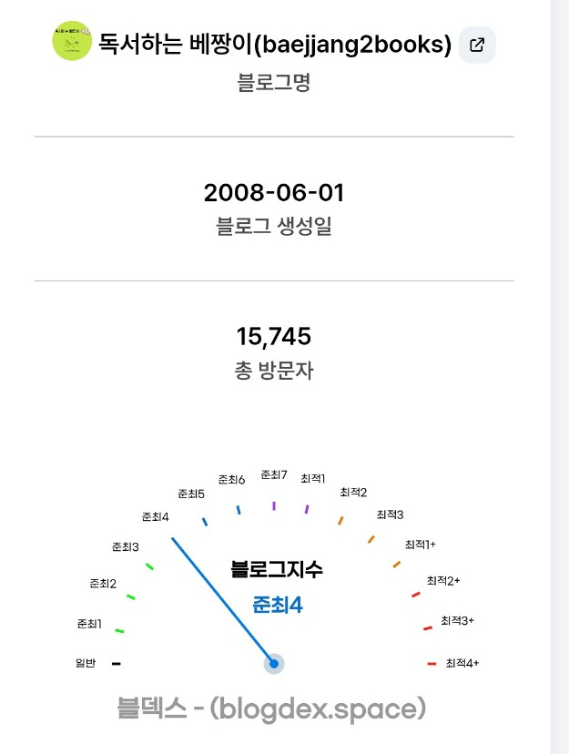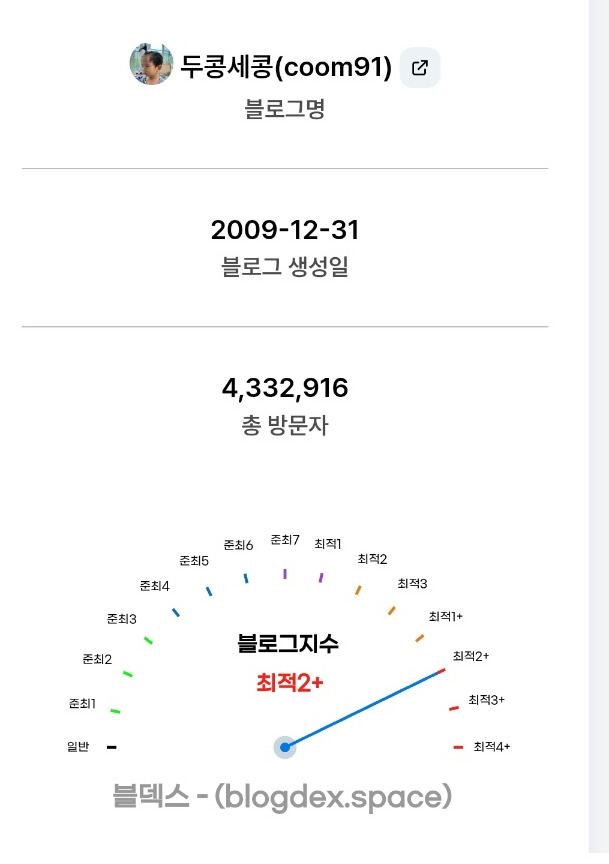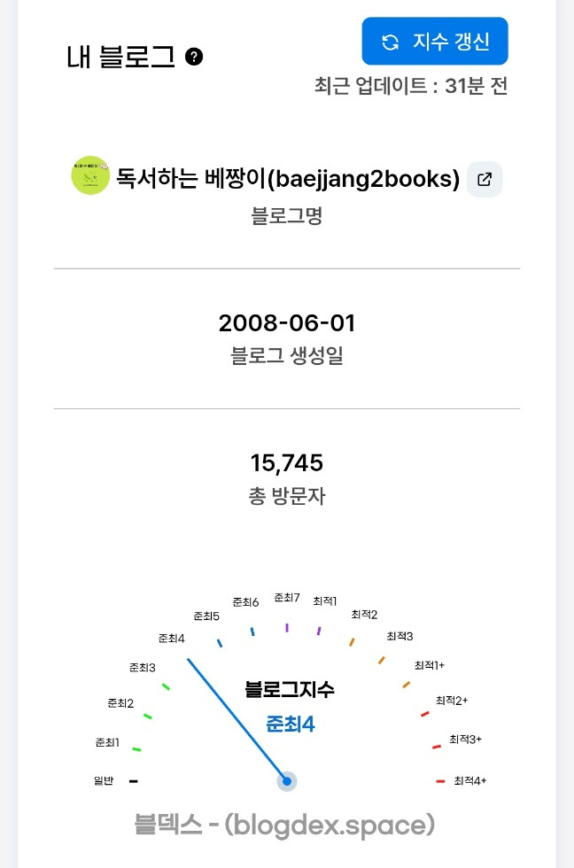 그리고 처음으로 블로그 지수 '준최 4'를 달성하게 되었습니다.