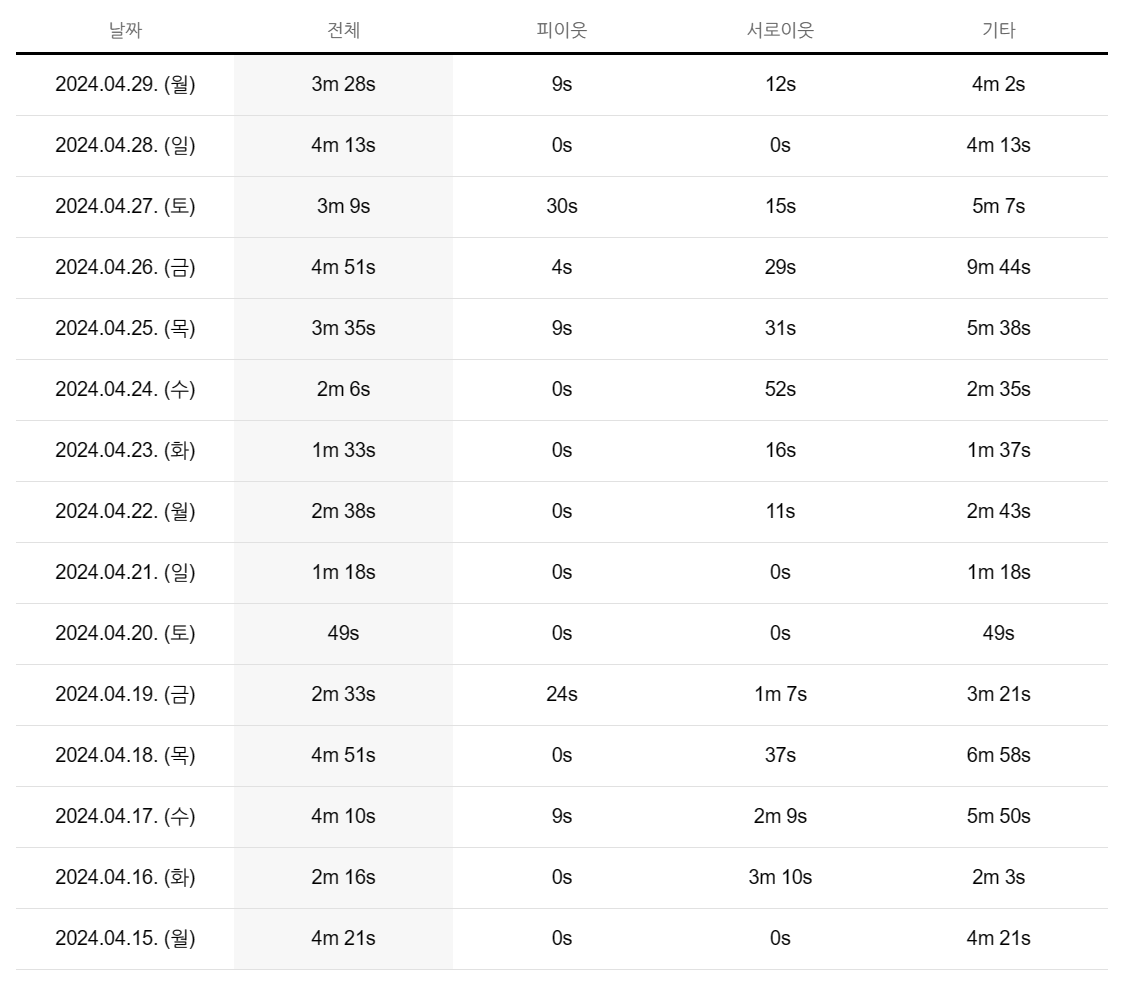 '기타'는 검색을 통한 유입, '피이웃'과 '서로이웃'은 나와 이웃관계를 맺은 사람들의 유입입니다. 눈에 띄는 체류시간 차이가 보이시죠? 진정 독자도 있겠지만 대다수는 글을 읽지도 않고 '좋아요'를 누르거나 자신의 블로그 조회수를 늘리기 위한 '댓글'을 달기 위한 방문에 불과합니다.