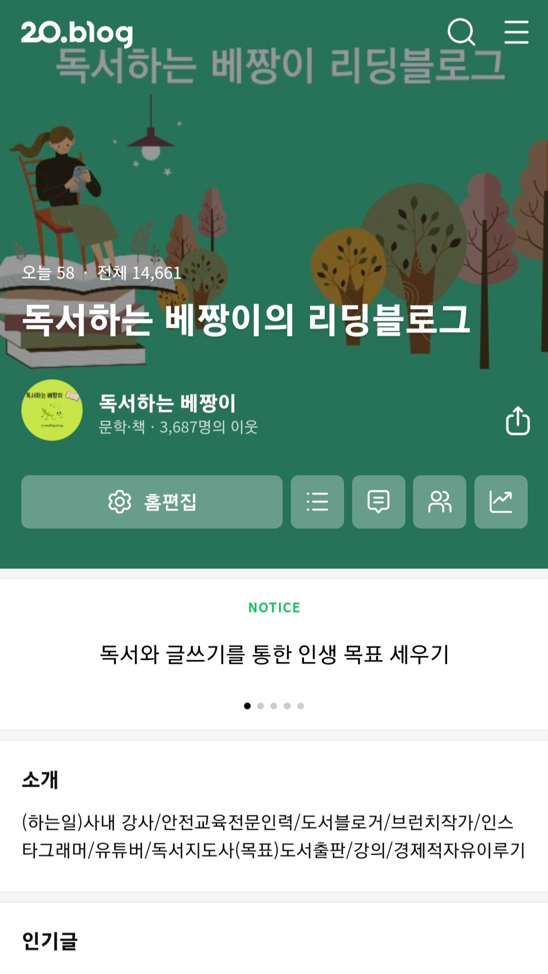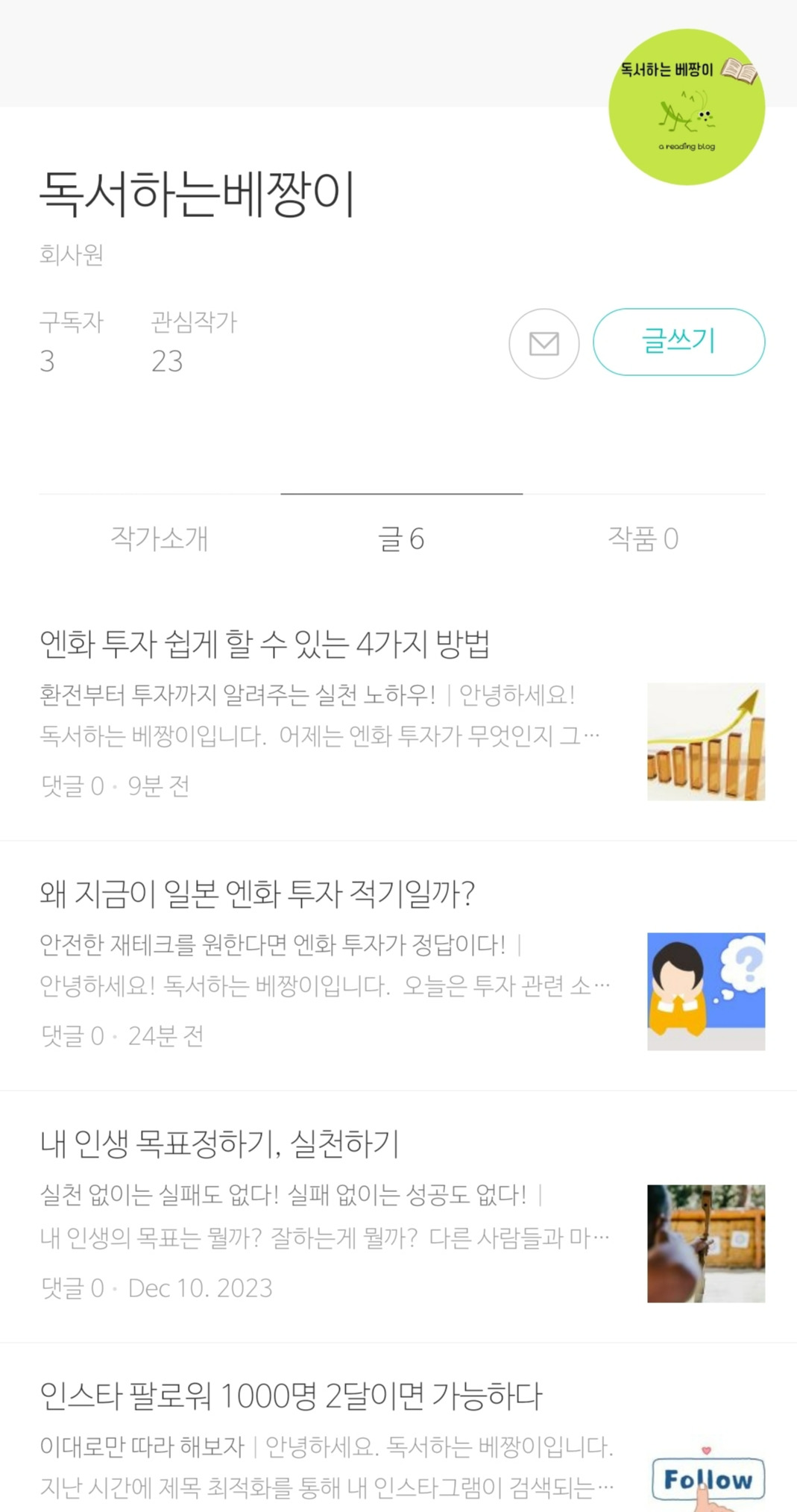 독서하는 습관이 블로그에 글을 쓰게 만들었고, 그 동안 작성했던 다양한 글이 4개의 SNS를 할 수 있게 만들어 준 보물창고가 되었습니다. 이 습관을 꾸준히 유지한다면 도서를 출판하고 작가가 되는 것도 생각보다 쉽게 할 수 있을 것 같아요.