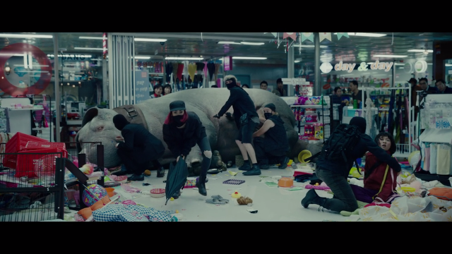 ALF는 굉장히 흥미로운 단체다. 그들은 독특한 방식으로 투쟁한다. 옥자를 잡으려는 경비대와 경찰들을 우산으로 막고, 연막탄을 쏘며 쇠구슬로 넘어뜨린다. 미자에게, 경찰을 막기 위해 우산을 펼치는 ALF 대원들의 모습은 불꽃놀이처럼 그려진다. 차가운 현실 위의 미자에게 새로운 동화가 펼쳐지는 순간이다. (개인적으로 명장면이었다.) 그들에게 폭력은 용납될 수 없다. 심지어 케이는 미자가 자신들의 계획이 시행되길 원치 않는다면 임무를 수행하지 않을 거라는 얘기까지 한다. 이토록 완벽한 비폭력이 어디에 있겠는가?
