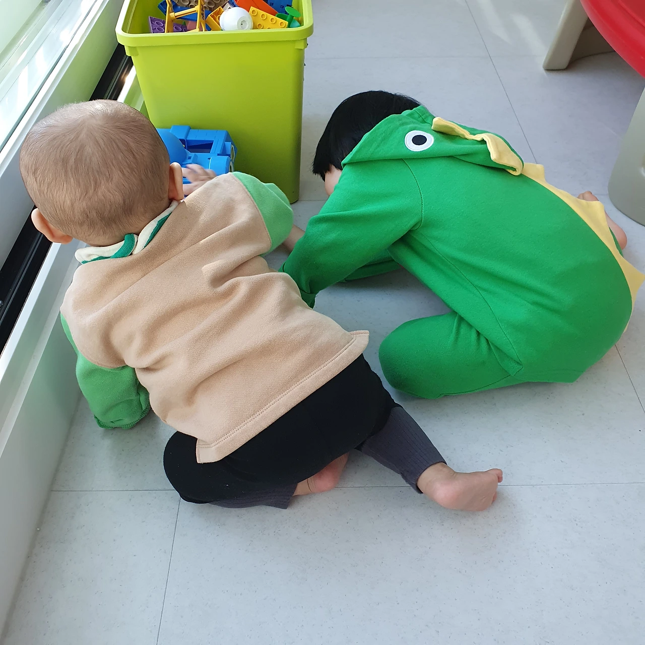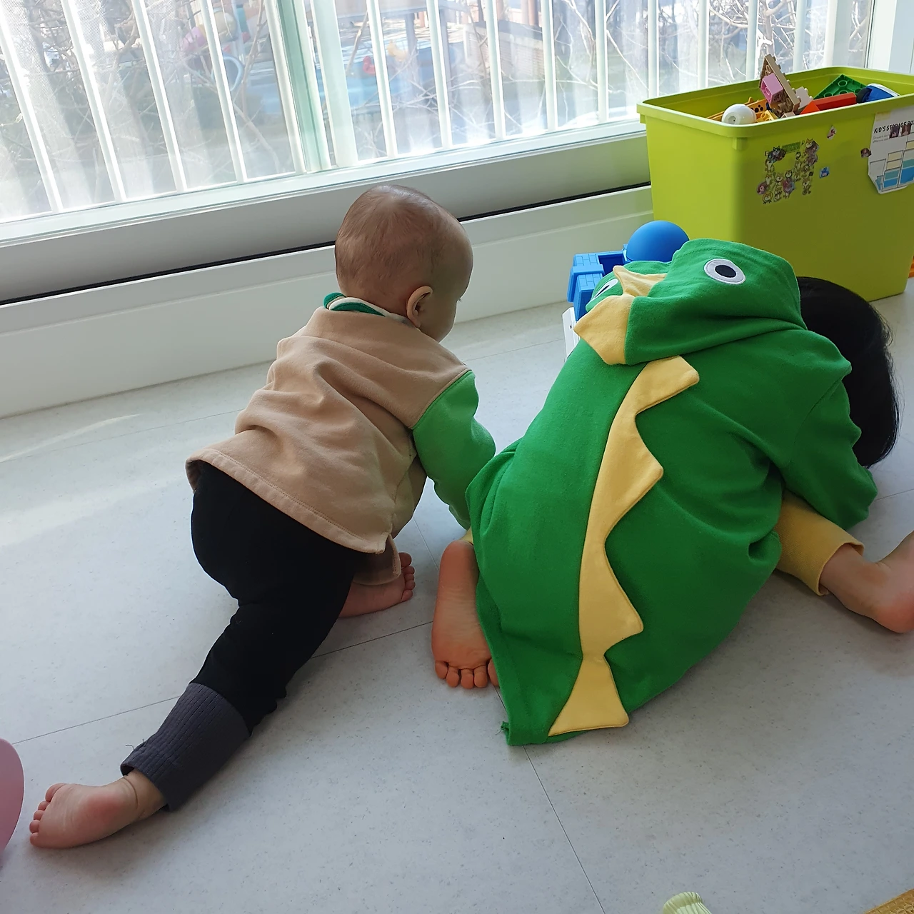 내가 어릴 적 고모가 없었기에 고모란 호칭이 어색하다. 백일에 '고모가 안아보자.'라고 말한 것이 처음이었다. 조카 예준이가 낯선지 울기 시작한다. 자연드림에서 아침에 사 온 아기 과자 덕분에 고모 점수 좀 땄다. 예준이가 주변이 편안해졌는지 걷기도 하고 기기도 한다. 희윤이 폴리 장난감도 만지기 시작한다. 어린이집과 유치원에서 동생 타령을 하던 희윤이는 예준이를 보자 경계한다. 자기 장난감을 높은 곳으로 올리거나 서랍에 담는다. 장난감 정리에 서툰 아이가 순발력을 발휘한다.