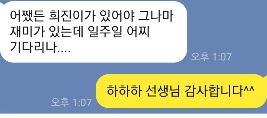 "어쨌든 희진이가 있어야 재미가 있는데 일주일 어찌 기다리나..."