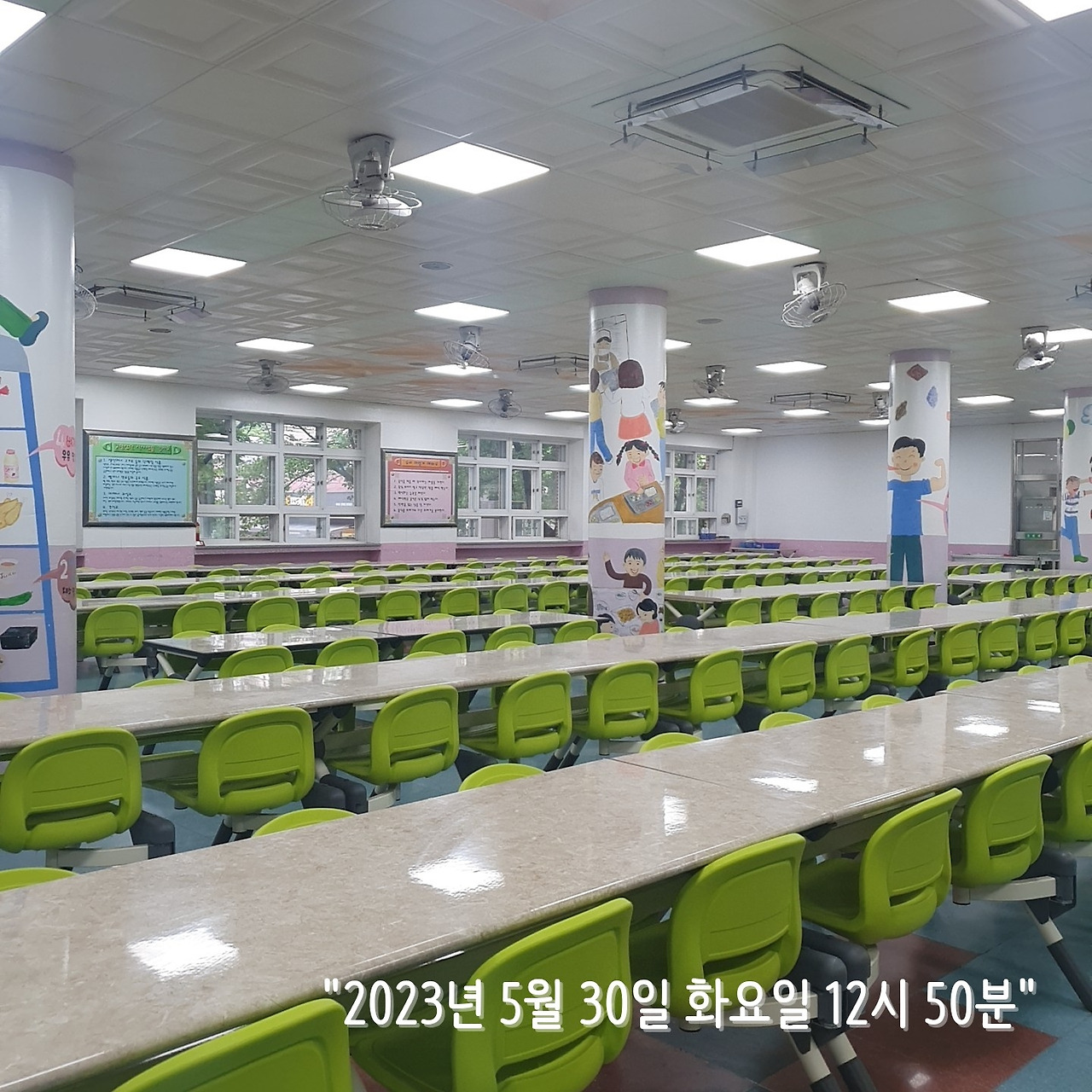 6학년 부장과 합의한 대로 따라주면 좋겠다는 마음으로 회의를 시작했었다. 담임 모두 모이니 방법이 보이기 시작한다. 5학년이 먼저 식사하는 1학기 남은 기간에는 우리가 창가부터 앉고 2학기엔 6학년이 창가부터 앉기로 했다. 반별 오는 순서대로 한 줄씩 앉으면 마주 보는 학반이 그때그때 달라지므로 학반 고정 자리를 두기로 했다. 1반과 2반이 같은 식탁에 앉는다. 원래 칸막이 있었을 때에는 5학년과 6학년이 마주 보았었다. 그러나 5학년 입장에선 그리하지 못하겠다. 그래서 5학년끼리 6학년끼리 따로 먹는 것으로 결정했다.