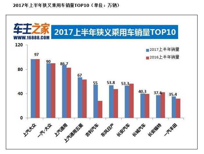 위의 그래프를 보면 2017년 상반기 창안자동차는 53.3만대로 2016년 대비해서 다소 감소하였지만