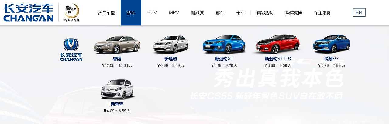 우선 창안자동차는 창안자동차, 창안오샹, 창안칭싱처 3가지 큰 브랜드가 있는 것으로 보여진다. 대중들에게 익히 알려진 창안자동차가 메인이고, 창안오샹은 창안자동차 대비 저가 브랜드인 것으로 보이고 창안칭싱처는 미형밴 타입의 차량이라고 보면 될 듯하며 대중차는 아니기에 언급만 하고 넘어가고자 한다.