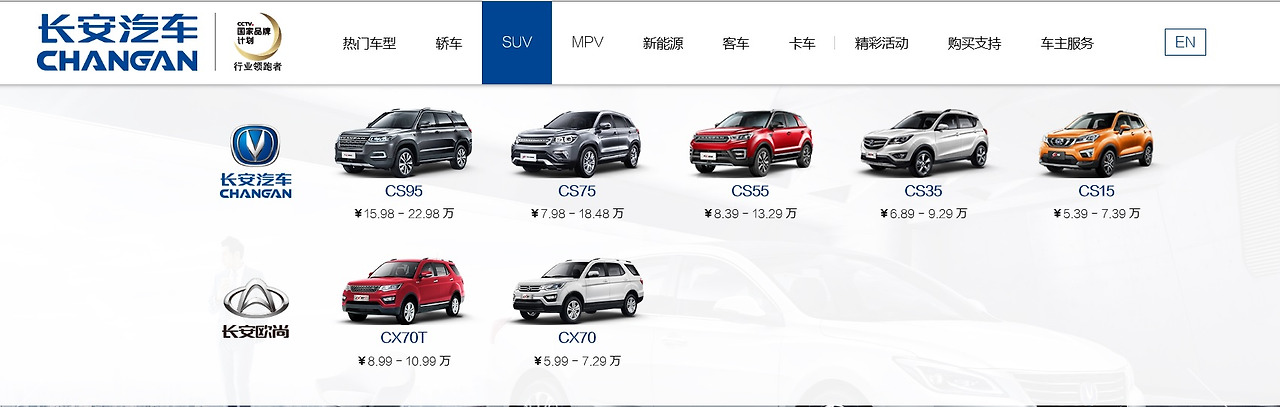 SUV 모델은 창안자동차 브랜드로 5개, 창안오샹 브랜드 2개해서 총 7개의 브랜드가 있다.