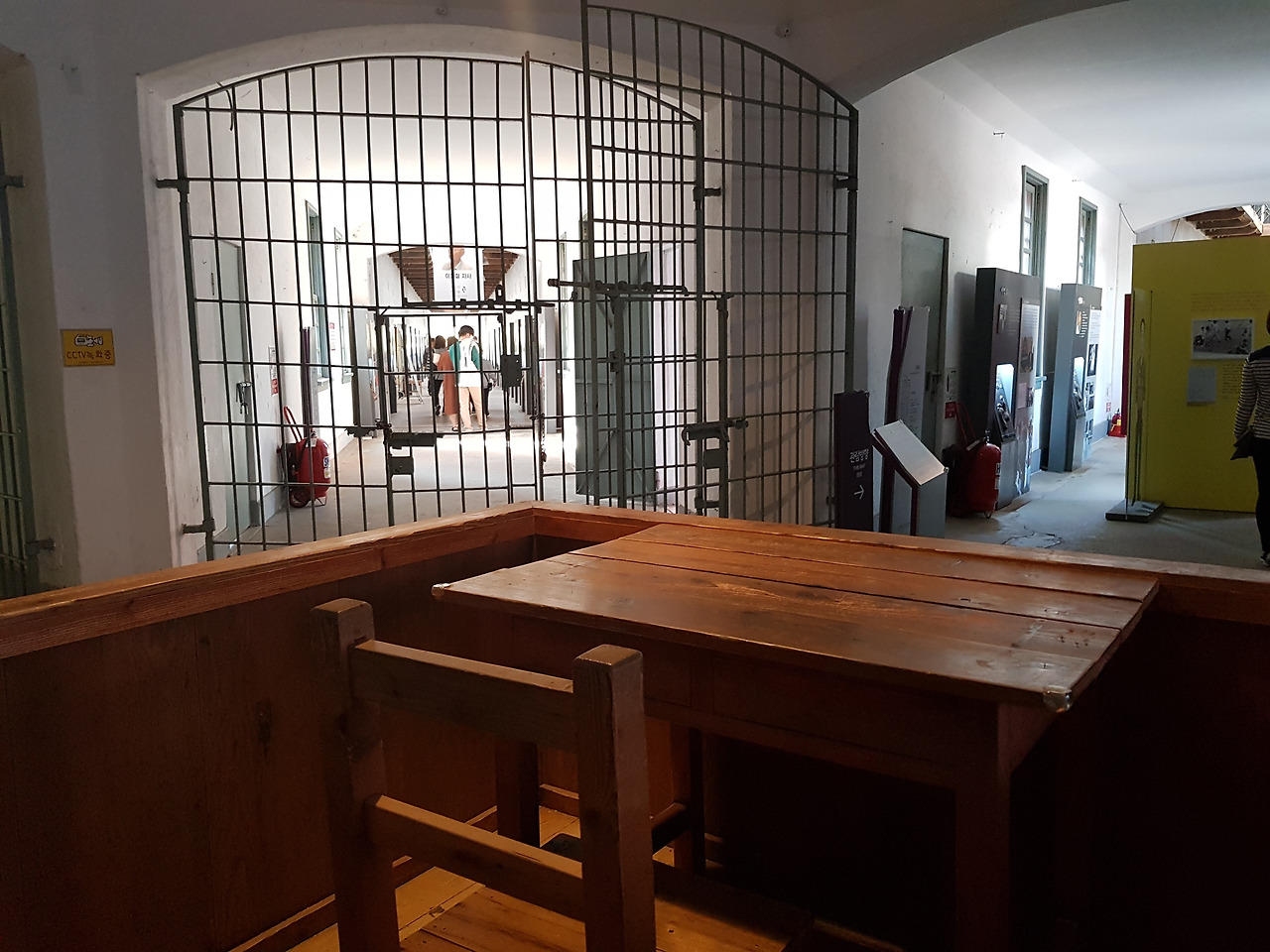 구보 안과 청사를 나와서 중앙사를 가보았다. 간수 감시대라고 되어있는 곳이 있었는데, 이렇게 간수들이 앉으면 전 옥사들을 지켜볼 수 있었다. 물론 여기서 빠져나와서 탈옥을 하는 사람들이 얼마나 있었을지는 모르겠지만, 이렇게 누가 나오고 들어가는지 다 지켜볼 수 있는 곳이 있다는 것 자체로만으로도 기분이 썩 좋지 않았다.