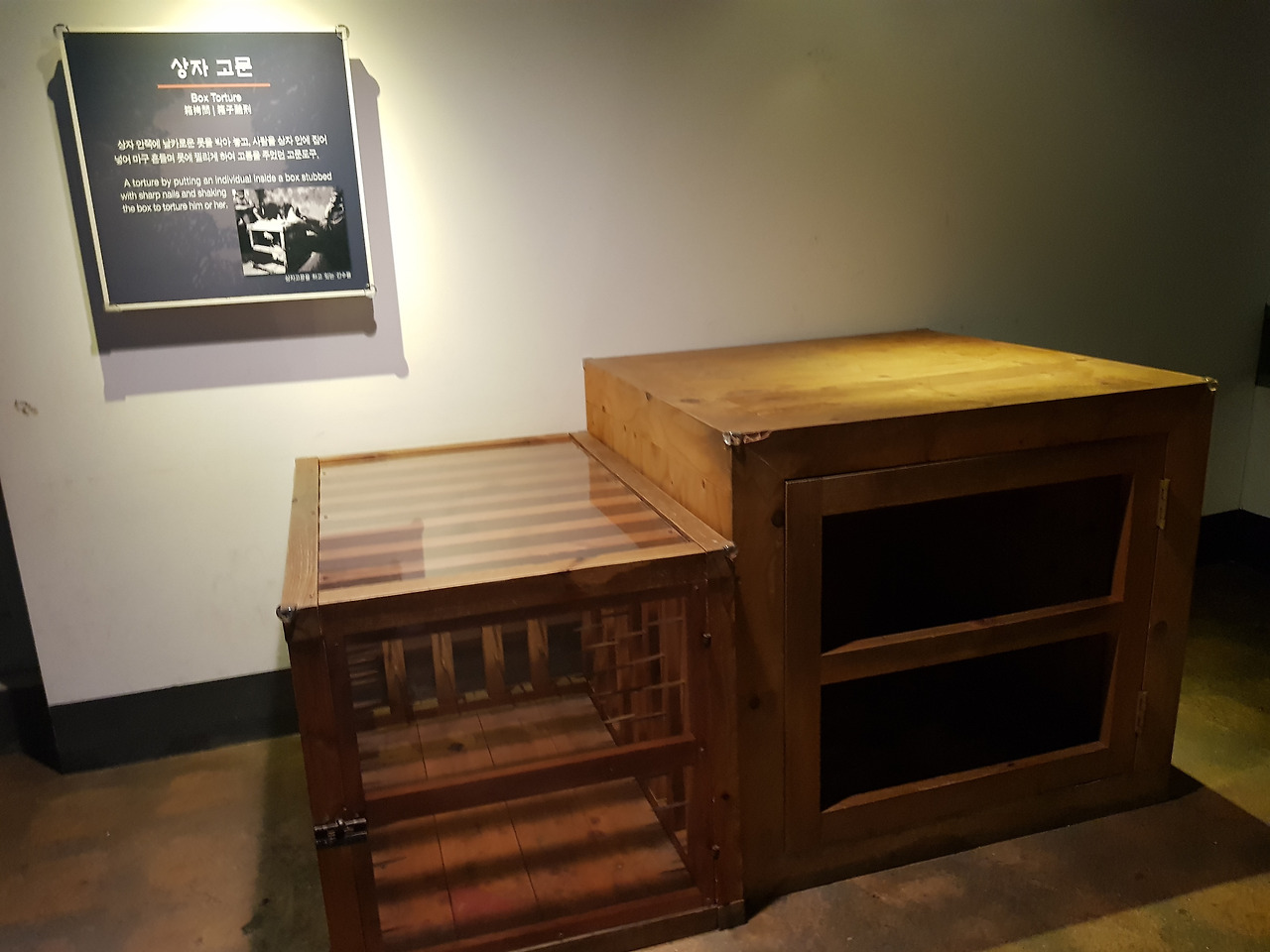 그 외에도 다양한 고문 방법들이 있었다. 상자 고문이나 손톱을 빼는 고문이나, 나중에 하얼빈에 있는 마루타 부대를 가볼 생각인데, 여기보다 더욱 악독한 생체실험이 이뤄졌던 곳은 얼마나 지독 할지에 대해서도 생각을 할 수 있게 되었다. 여러모로 힘이 없으면 이렇게 국민들이 고통을 받아야 하는구나 라는 생각이 들었다. 세금이 많이 들어갈지도 모르겠지만, 소 잃고 외양 갓 고치는 일이 없도록 미리미리 준비를 해서 우리나라를 스스로 지킬 수 있는 또는 외교를 통해서 지켜낼 수 있는 방법들을 여러모로 강구를 해야 된다는 생각이 들었다.