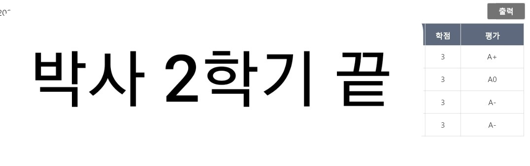 2학기 성적표를 보니 그래도 직장 생활하면서 힘들게 공부했던 게 나쁘지 않게 결과가 나와서 다행이다 싶었다.