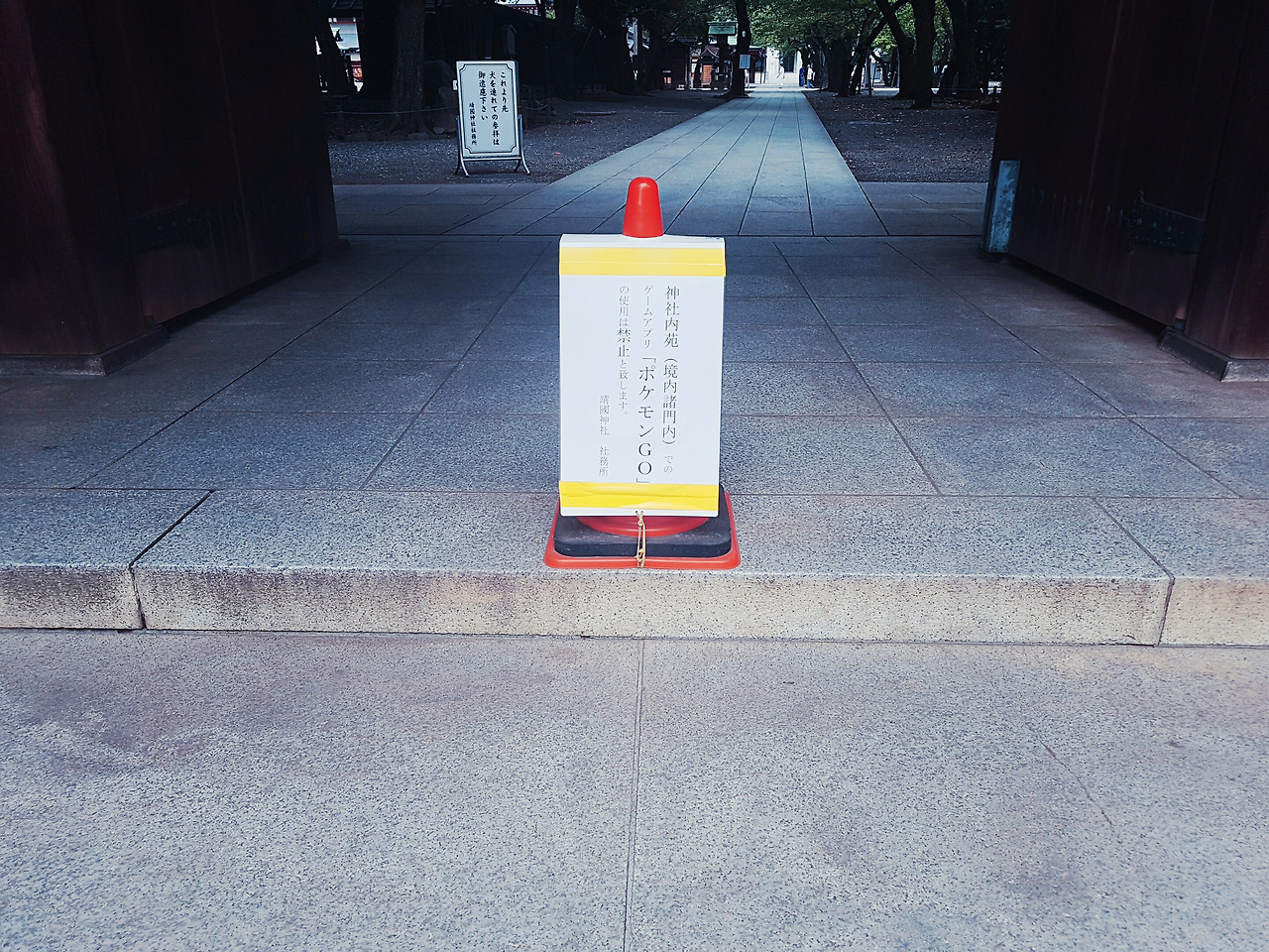 야스쿠니 신사 입구에 적혀있던 것은 포켓몬고 금지라는 문구.
