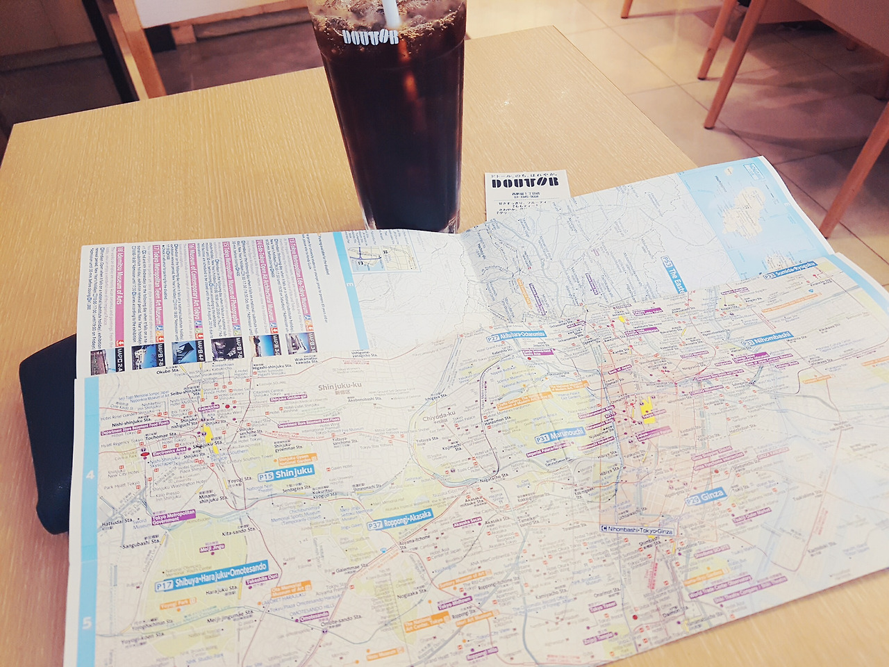 숙소에서 신주쿠 역을 가는 길목에 도토루 카페가 있었다. 매일 출발을 하기 전에 도토루 카페에 들려서 지도를 펴고 여행 계획을 짜는 게 일상이 되었다. 커피 가격도 저렴해서 부담도 되지 않고, 아직 7~8시 사이에 갔는데 직장인들이 많이 있어서 여기 직장인들은 어떤지 관찰을 하기도 하면서 그렇게 30분 정도? 1시간 정도 머물렀던 것 같다. 역시 바쁘게 움직이는 직장인들 사이에서 커피를 마시면서 지도를 쳐다보고 있는 그 나름대로의 매력은 언제나 있는 듯하다. 왠지 모르게 한량이 된 느낌이 들기도 하고, "나는 출근 안 하지요"이라고 하는 것 같은 느낌 또한 들었다