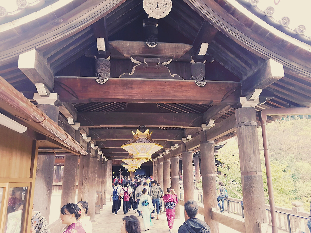 줄을 잠시 서서 기요미즈데라 입장권을 사고 들어가니 일본 특유의 절의 느낌들이 물씬 품 겼다. 목재로 되어있어서 유지를 하기는 어려울 것 같지만, 그 목재 건축물들에서 느껴지는 그 느낌이 너무 좋다. 수백 년 동안의 시간을 버텨가면서 알맞게 변해가는 목재 건물들의 느낌은 언제나 좋다.