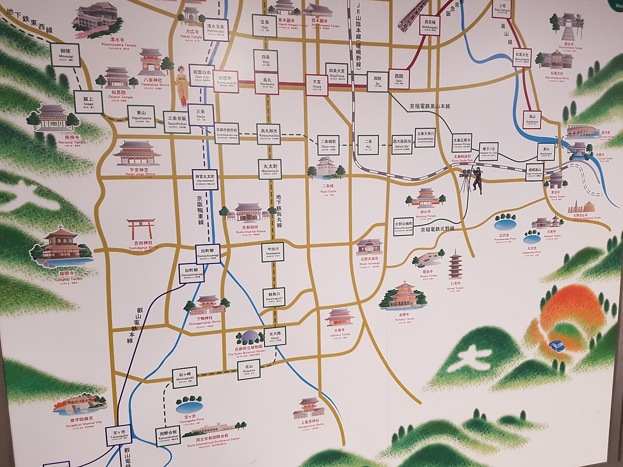 한참을 지나서 교토에 도착을 하였다. 교토 안내지도만 봐도 얼마나 많은 볼거리들이 있는지 알 수 있다. 이중 몇몇밖에 못 가봤다는 게 너무나 아쉬울 따름이다. 다음번에는 별도로 교토 만 3박 4일 정도 있어도 좋을 것 같다는 생각이 든다.