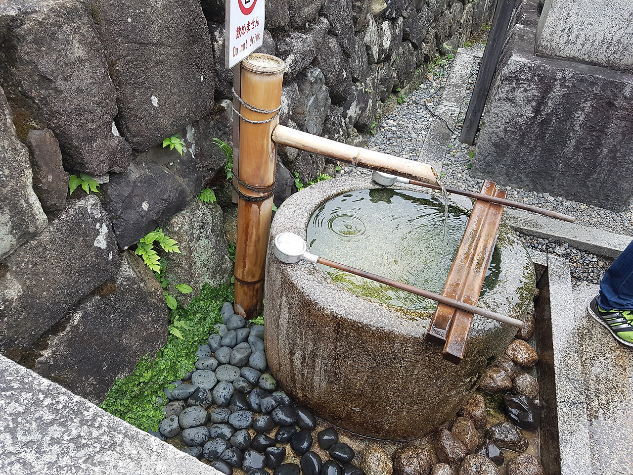 우물(?) 같은 데인데 마시지 말라는 거 보니 그냥 손 씻을 때 쓰는 용도인 것 같았다. 저기서 물을 뜰 수 있는 컵 같은 것을 들고 사진을 찍는 사람들이 제법 있었다. 기모노를 입고 저걸 들고 사진을 찍으면 괜찮은 모습이 나올 수 있을 것 같긴 했다.