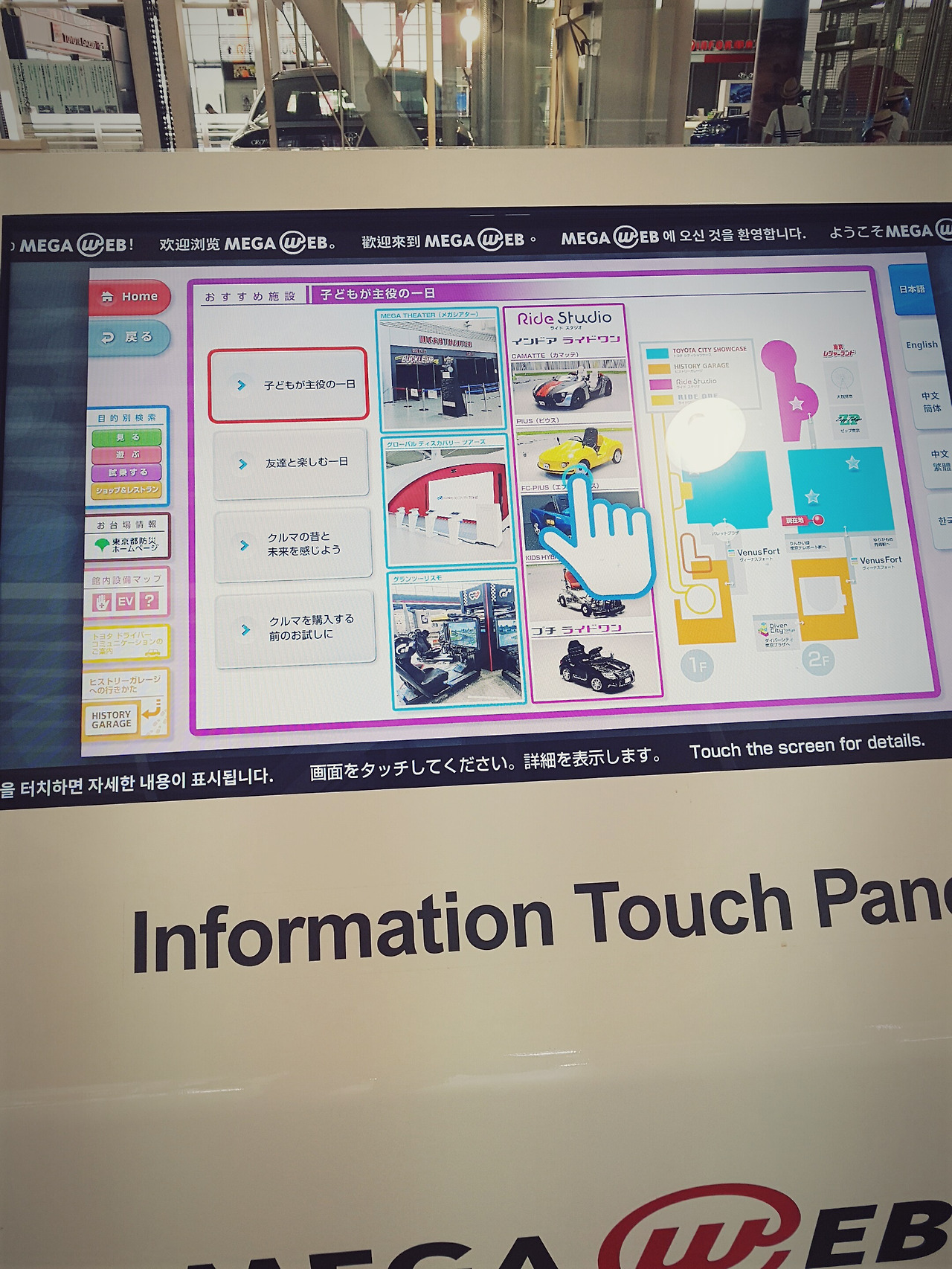 입구에는 이렇게 인포메이션이 잘되어있었다. 미라이(MIRAI)라고 적혀있는 모델은 도요타의 수소연료전지 자동차의 모델 중 하나이다. 아직까지는 기술 자체가 금액이 비싸서 수소연료전지 자동차를 사려면 많은 금액을 지불하여야 하나, 향후 정부의 지원이나 소비자 인지도가 높아져서 어느정도의 규모의 경제가 형성되면 가격이 인하될 것으로 생각 된다. 아무튼 인포메이션에서 하나씩 눌러보면서 어디부터 돌아볼지 동선을 파악하고 조금씩 구경하기 시작했다.