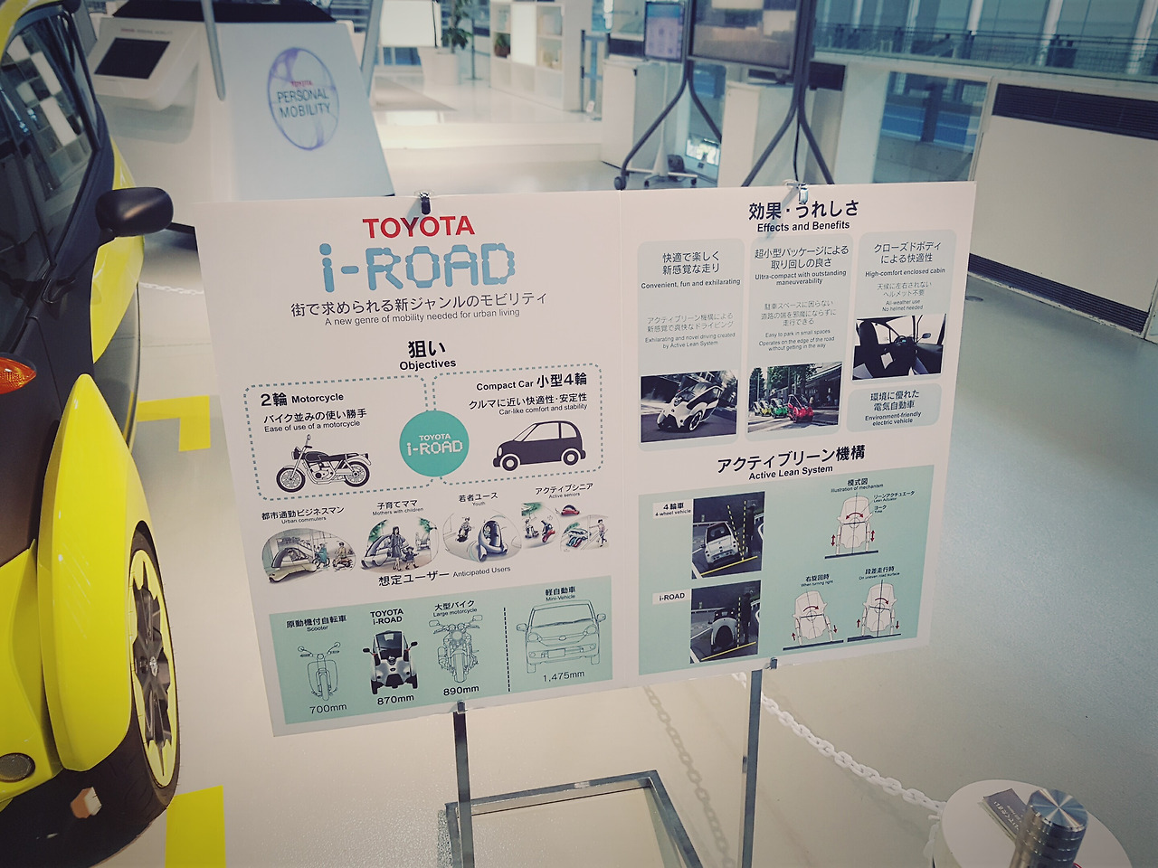 자세히 보지는 않았지만, 퍼스널 모빌리티라고 되어있는 도요타 I-ROAD 대한 설명도 있었다. 나중에 시간이 되면 도요타 브랜드 분석을 하면서 어떠한 기술인지 알아봐야겠다는 생각이 들었다. 우리나라에도 르노의 트위지 같은 모델들이 있긴 한데, 개인적으로는 안전이 보장되는 기술인가?라는 생각이 들기도 하고 저렴한 이동수단이긴 하지만, 오토바이나 자전거를 대체할만한 가치가 있는 기술인지에 대해서는 아직도 긍정적인 생각을 갖고 있지 않다.