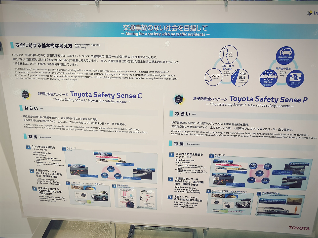 도요타의 모든 기술들을 집약해놓은 곳이라는 생각이 들 정도로, 다양한 기술들을 설명해 놓고 있었다. 사람들이 중요하다고 인식하는 안전 부분도 Toyota safety sense C, P.