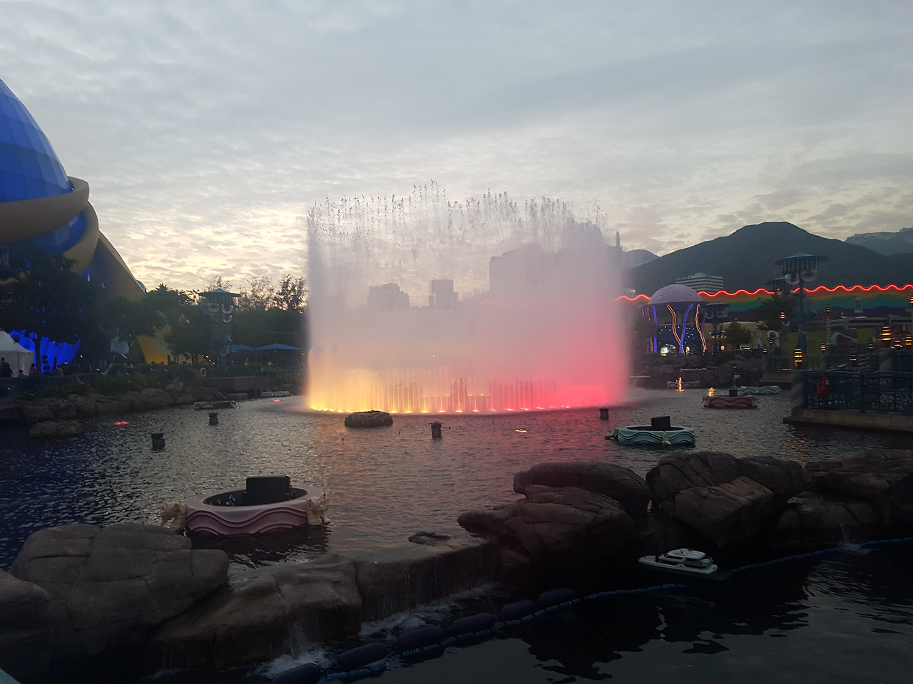 아침에 분수대랑 밤의 분수대의 분위기는 다른 것 같다. 무튼 이렇게 홍콩 오션파크 일정은 끝이 났다.