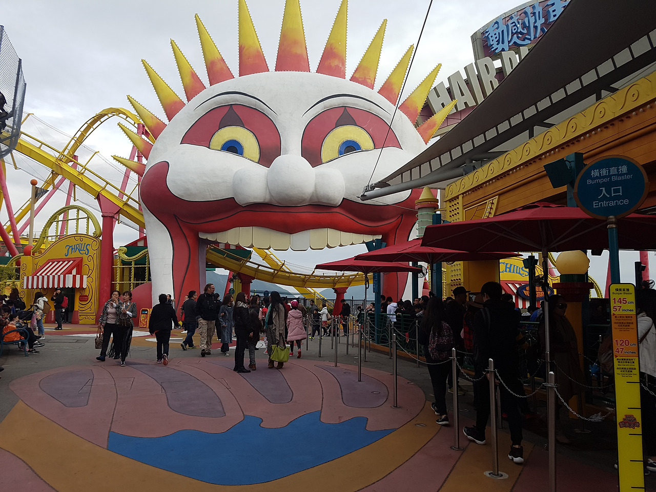 놀이기구를 몇 개 못 탔는데, 그중 하나가 이 피에로 롤러코스터였다. 자이로드롭도 있던데 원래 자이로드롭을 안 좋아해서 타지 않았고, 바이킹은 안 큰 거 같아서 안 타고 결국 제대로 탄 몇 안 되는 놀이기구 중 하나인 롤러코스터는 대기시간이 길었지만 재미있었다.