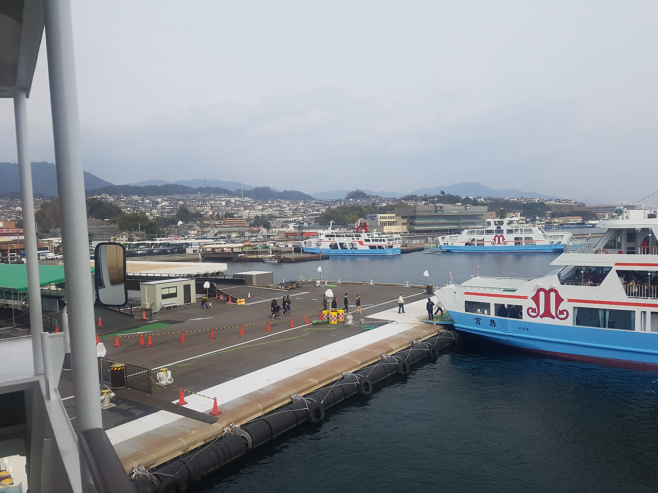 페리항에 도착!! 공항에서 미리 사둔 히로시마 패스를 이용하면 페리 요금이 무료이기 때문에 패스를 보여주고 바로 미야지마 행 페리를 탔다. 10분 정도 탔을까?? 체감 적으로는 아주 짧게 페리를 탔더니 미야지마 섬에 도착을 했다.
