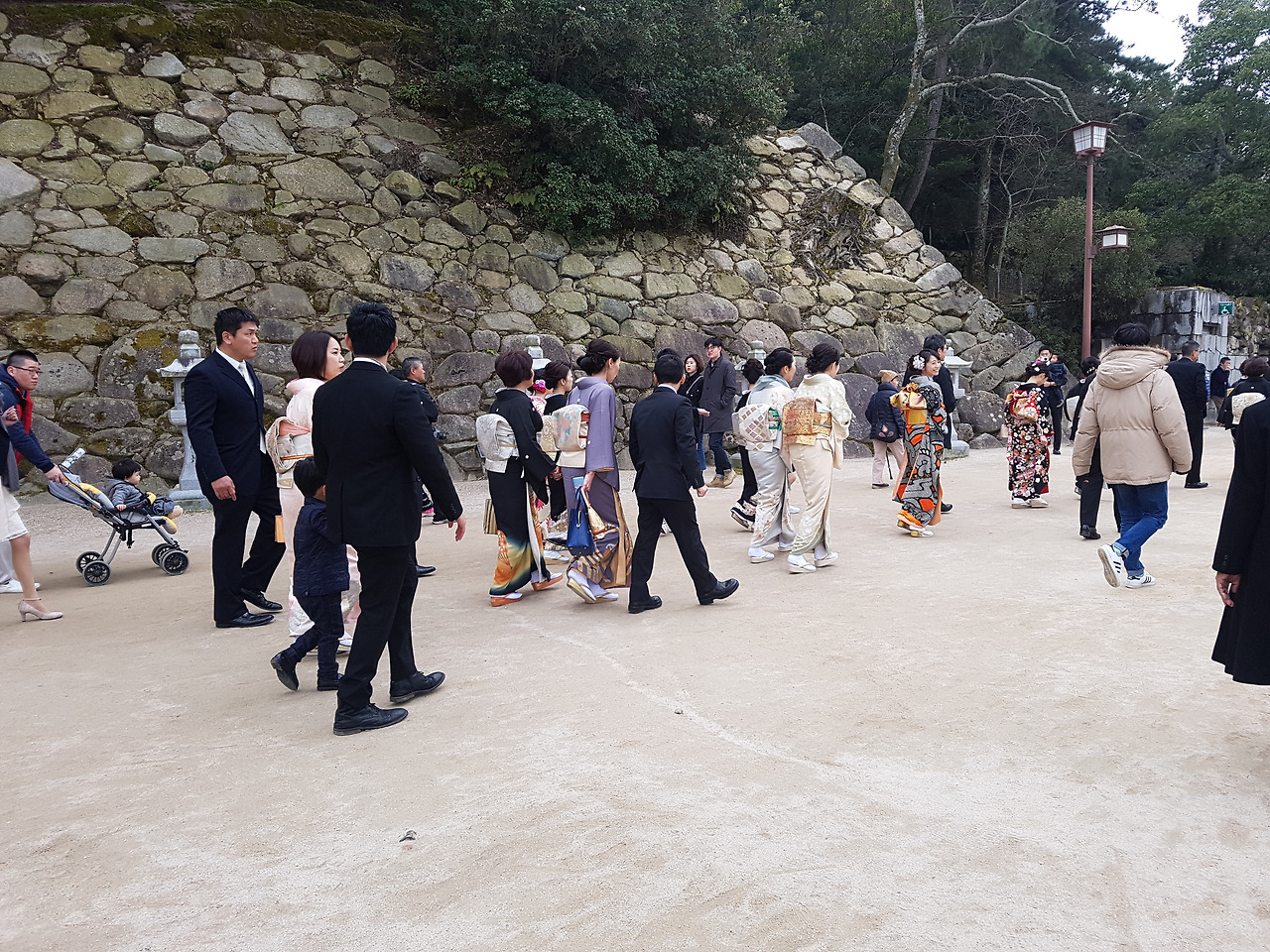 그리고 기모노를 입은 무리들이 있었는데, 미야지마에서 결혼을 하는 사람들인 듯했다.