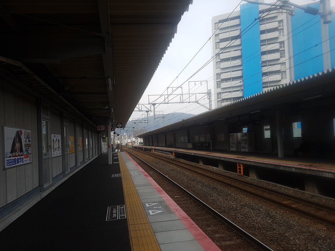 스크린 도어가 있어서 잘 안 보이는 우리나라와는 다르게 너무 뻥 뚫려있다. 물론 우리나라도 스크린도어가 설치되지 않은 곳도 많이 있지만 말이다. 지방도시임에도 불구하고 JR선이 잘 정비되어 있는 점은 일본의 장점이라고 생각이 된다. 이제껏 일본 여행을 다니면 버스는 솔직히 처음 타면 방향도 어려운데, 이렇게 타고 다니면 길을 잃어버릴 확률도 낮고 좋다.