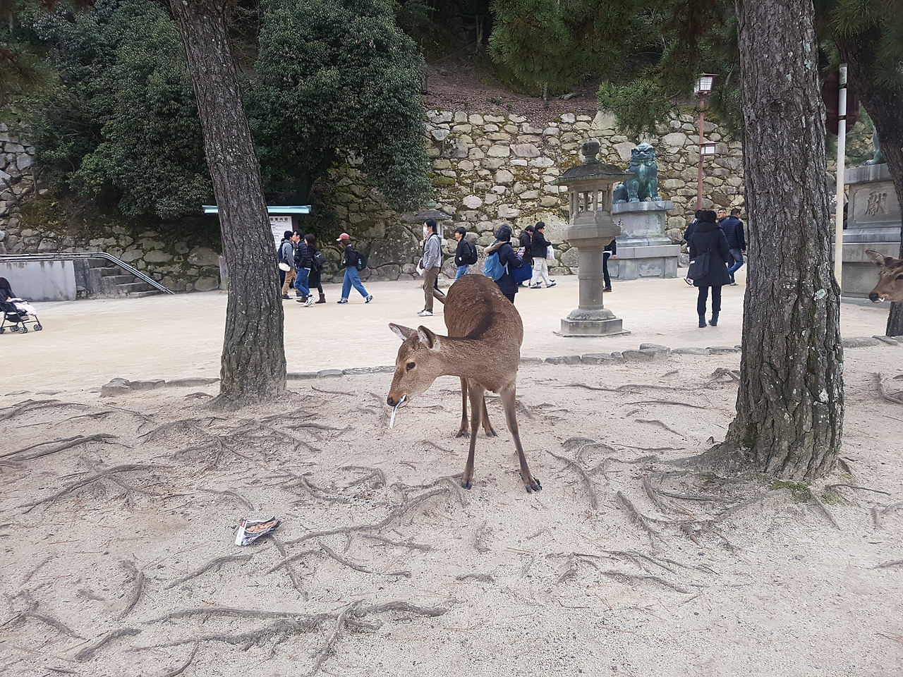 미야지마에는 사슴이 많이 있다. 지도 같은 것도 뺏어 먹기도 하고 듣기로는 옷도 먹는다는데, 다행히도 그런 일이 없었고 가는 곳곳마다 사슴들이 돌아다녀서 신기했다.