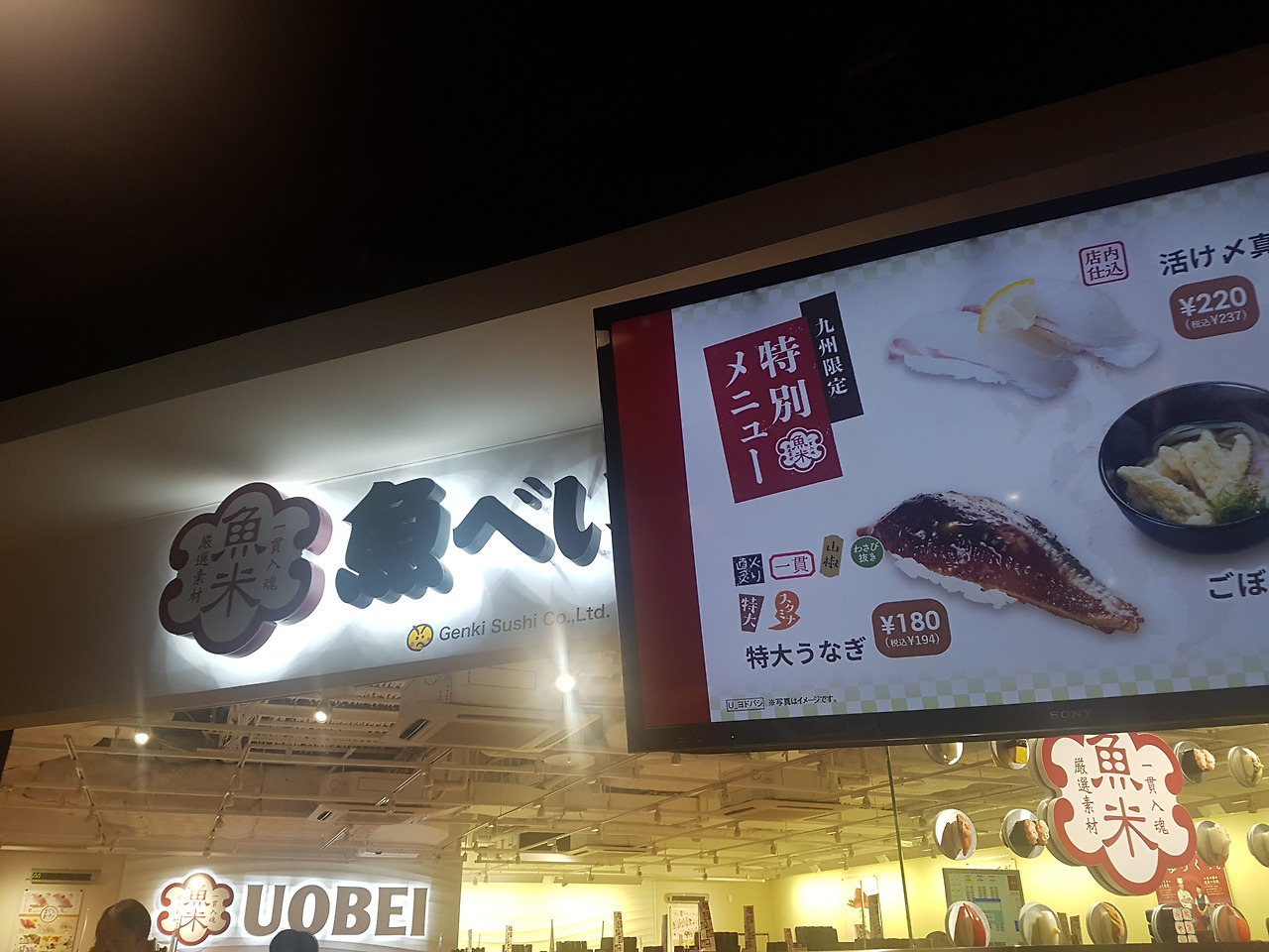 공항에서 하카타역으로 나와서 제일 먼저 한 것은 전국 체인점인 우오베이 uobei이다. 지난번 도쿄에서 친구랑 먹은 뒤에 가성비가 나쁘지 않았던 것 같아서 다시 찾게 되었는데 역시 초밥은 항상 옳다.