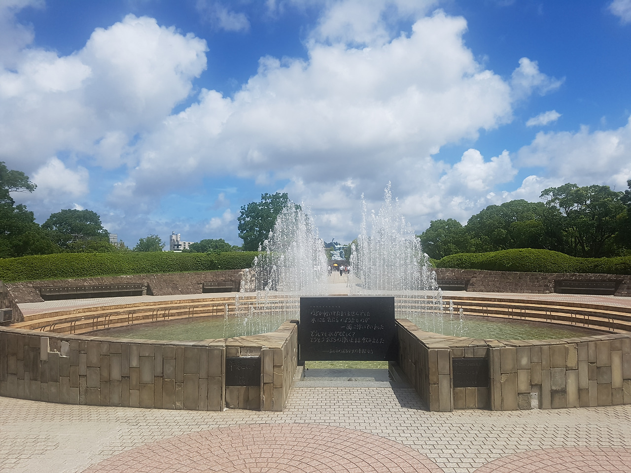 그리고 찾아 나선 평화공원은 이름 그대로 평화로웠다. 맑은 하늘에 흰구름 그리고 분수대는 아름답기까지 했다. 과거 원자폭탄이 떨어졌던 곳 주변에 이러한 공간들이 생겨서 사람들이 방문을 할 수 있도록 구성을 해놓은 것 자체는 일본 사람들이 유독 잘하는 분야지 않나?라는 생각도 들었다.