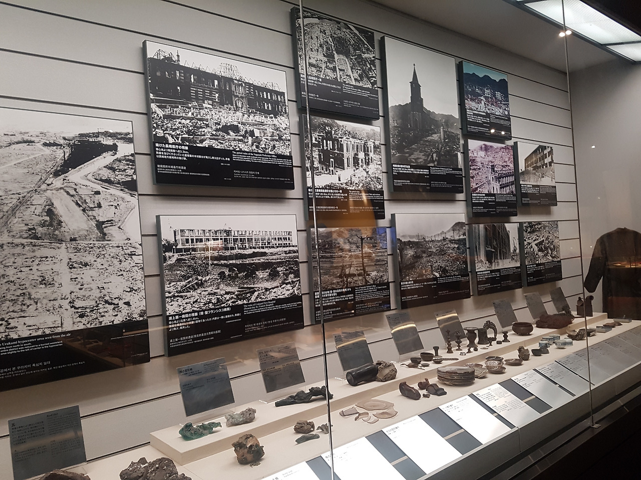 나가사키 원폭자료관에서 보았던 전시품들은 참담함 그 자체였다. 책에서 보았을 때는 단순히 나가사키에 원폭이 떨어져서 사상자가 어느 정도 발생하였다.라는 정도로만 인지하고 있었으나, 자료관에서 보이는 자료들은 지옥의 현세화라고 해도 이상하지 않을 정도였다.