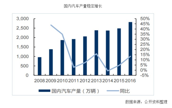 위의 그래프 상으로 보았을 때는, 그냥 자동차 시장이 성장한 것일 뿐이지만, 해당 분석 글들을 보면 배기량 1.6L 이하 세단 차량에 대한 판매량이 증가했다고 적혀있다. 그리고 중국의 연간 생산량은 2016년 이미 2,500만 대를 넘어섰다.