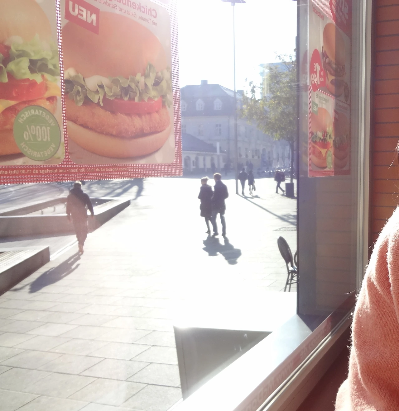 식당을 가나, 사택에 거주하는 지인의 집을 가나 우리의 관심은 늘 와이파이 찾기였다. 식당에 들어가면 반드시 "Kann ich das Wi-fi benutzen?" (와이파이 사용할 수 있나요?)라고 물어보기 일 수였다. 대답은 "그게 뭐야?" 혹은 "아니"가 전부였다. 이미 독일에 거주하고 계신 한국인 가족의 집이나 새롭게 초대받은 분들의 집으로 가면 와이파이가 가능했지만 와이파이 사용하겠다고 매일 그들의 집에 살 수는 없었다. 거의 반 포기하며 살아갈 때쯤 친구들과 나는 도시의 시가지를 구경했고, 전 세계 어딜 가나 있는 맥도널드에 들어가기로 했다.