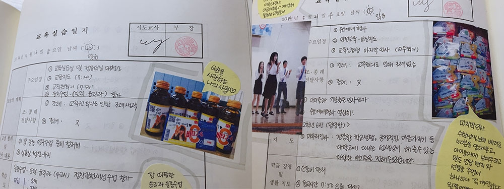 교육실습생이었던 나는 우리 반 애들을 진심으로 사랑했고, 멋진 교생 선생님들과 벅찬 감동이 넘치는 4주를 보냈다. 인생에 그렇게 행복한 날이 또 올 수 있을까 하는 생각이 들 정도로 최고의 순간이었다. 교육실습일지는 의무적으로 기록해야 하는 일이었지만, 행복을 잊기 싫은 마음에 사소한 순간마저 깨알같이 기록했다. (실습일지 수상식이 있다는 사실은 실습 전부터 알고 있었던 게 아니라 실습이 끝나고 나서 일지를 본부에 제출할 때 알았다.) 상을 받기 위해 일지를 쓴 건 아니지만, 제출하고 보니 우수상을 받았고 나중에 버킷리스트를 보니 교육실습을 잘해서 모범 표본을 하나 남기라는 목표가 적혀 있었다. 그 표본이 구체적으로 무엇인지는 적지 않았는데, 일지를 쓰고 수상을 받았으니 원하는 것을 비슷하게 이뤘다는 생각을 했다. (더 행복했던 점은 함께 교육실습을 했던 친구도 수상을 받았다는 것이다. 실습학교가 같은 두 사람이 400명이 넘는 실습생들 중에서 각각 1, 2등을 수상했다. )