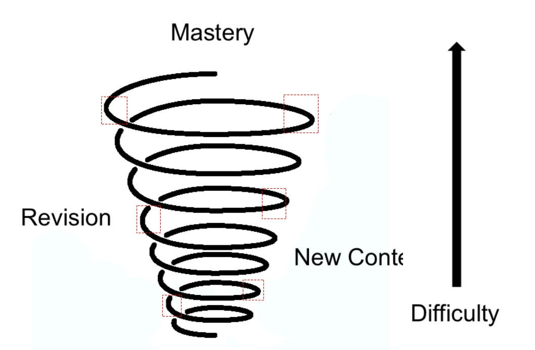 우리나라의 학제를 기준으로 봤을 때 초등학교에서 중학교로 넘어가는 그 지점이 첫 번째 관건이다. 요구하는 과제, 수행해야 할 시험의 수준, 학습의 내용이 복잡해지고 어려워며 양도 많아진다. 브루너의 나선형 교육과정에 따르면 학습 내용은 동일한 내용을 가르치되, 점차 폭과 깊이를 더하여 조직해야 한다. 어떤 내용을 먼저 가르치고 나중에 가르칠 것인가를 결정해야 하며 대부분 단순에서 복잡으로 가는 형식을 사용한다. 영어 교과에 서서는 현재 완료 시제를 배우기 전에, 현재 시제부터 배우도록 조직힌다.