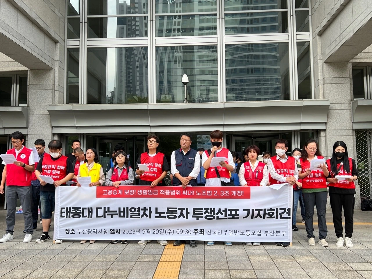 "점심시간에 여유롭게 식사하러 가는 공무원 모습을 보고 울컥했어요. 같은 부산시의 노동자인데 우리는 휴게시간도 없이 일을 했었잖아요(올해 협상으로 휴게시간 겨우 쟁취함). 반면 부산시청 노동자의 발걸음은 여유롭다고 할까요. 우리는 싸워서 겨우 휴게시간 쟁취했고, 저임금에 생활임금 13,000원에 목을 메야하는데 말이죠."