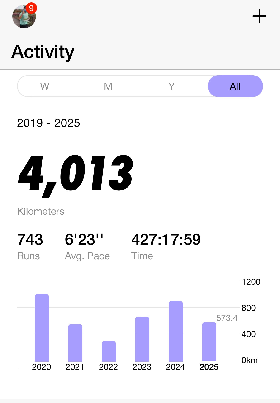 별로 신경 안 쓰고 있었는데 6년 만에 4,000k를 뛰었다. 첫해 1,000km를 찍고 5년 안에 5,000km 찍을 줄 알았다. 6년이지만 아직 4,000이다. 지난 6년간 러닝을 대하는 태도도 바뀌었고 내적 힘도 얻었다.